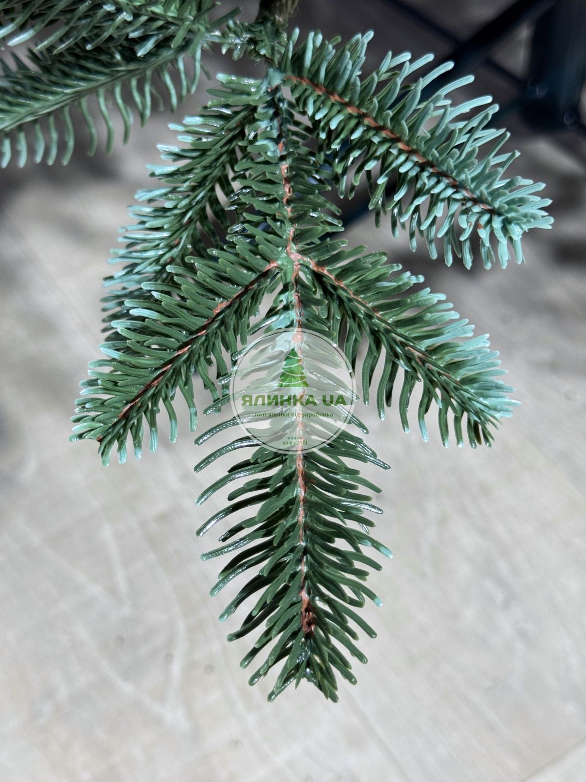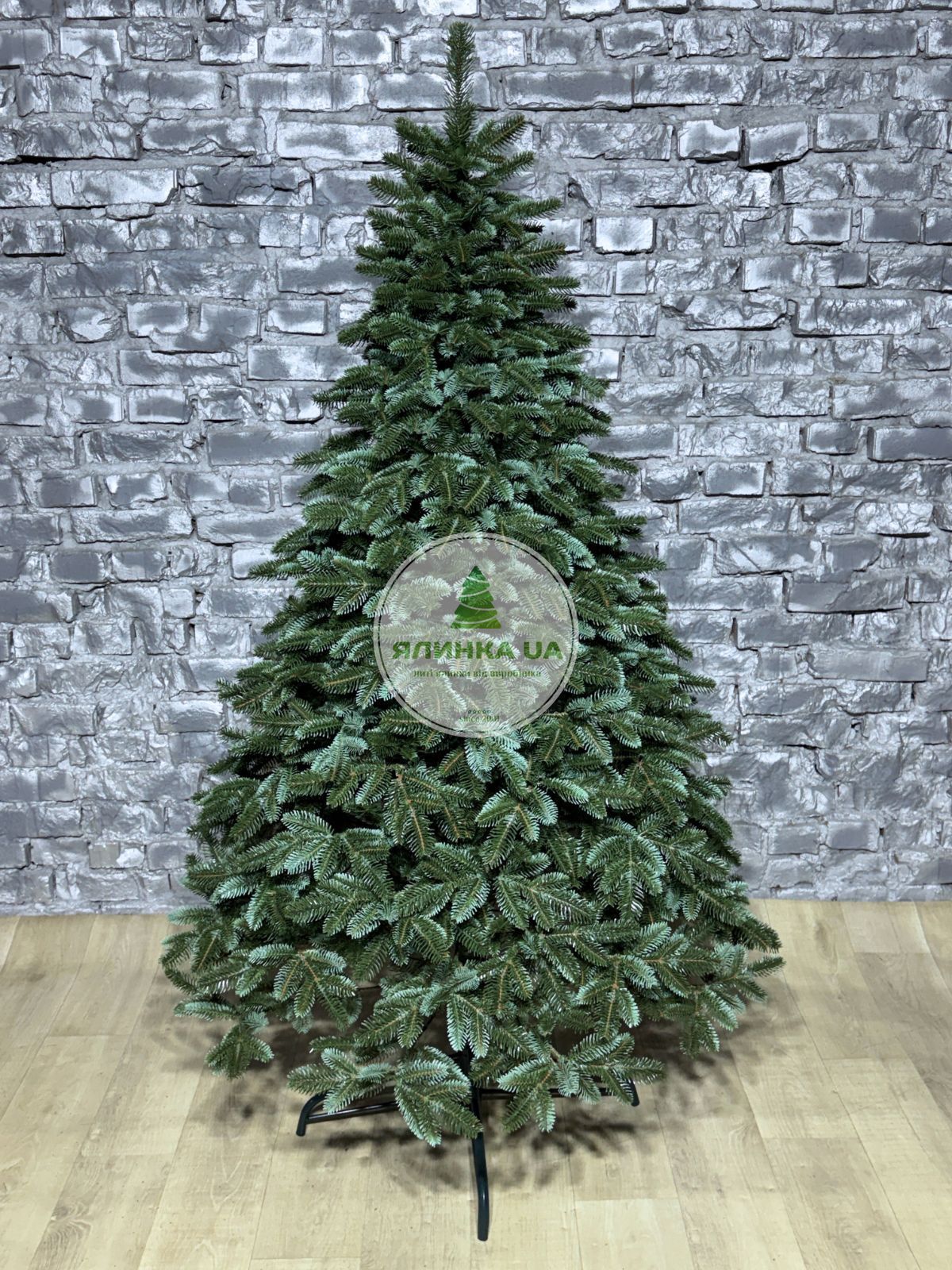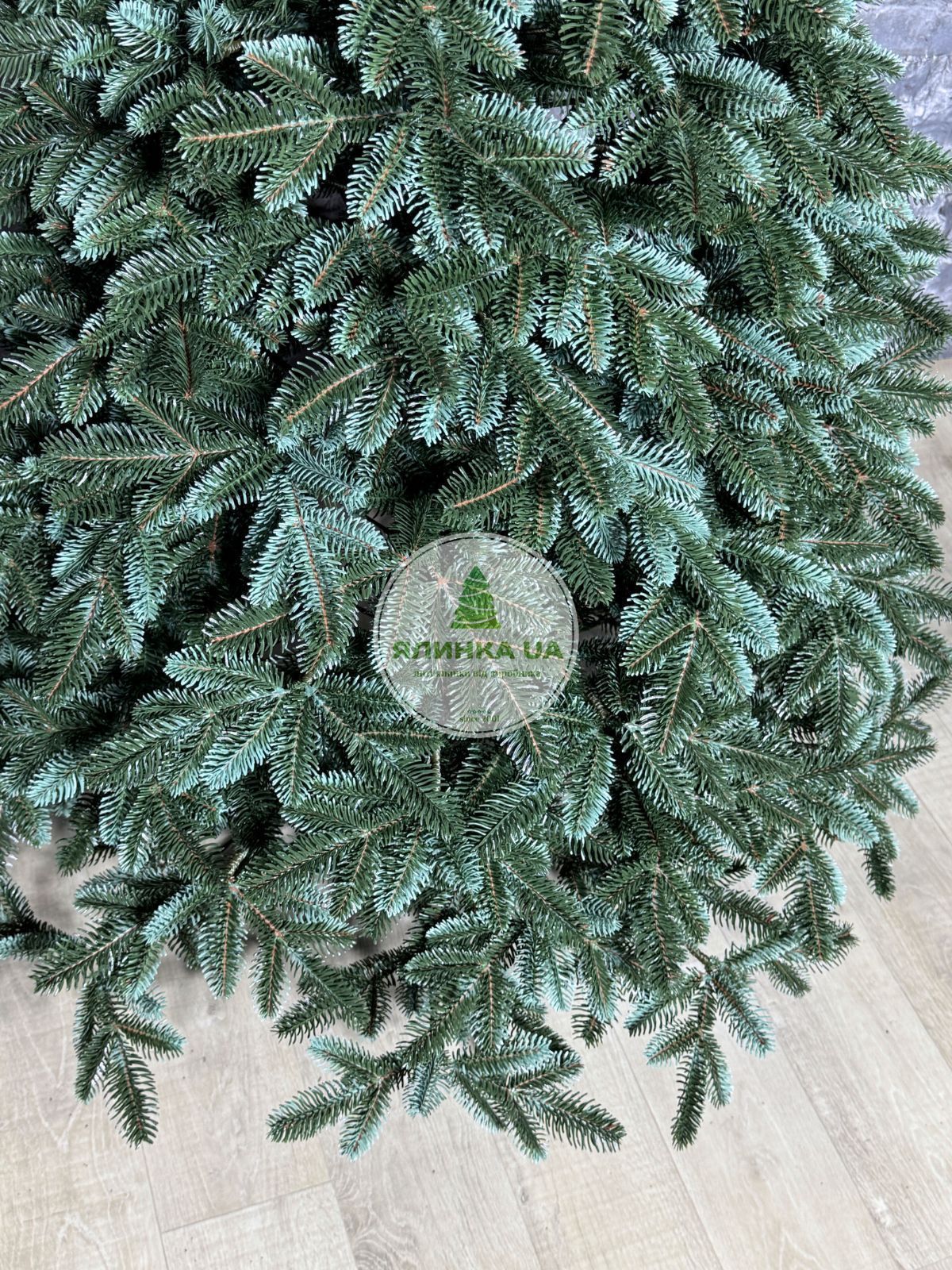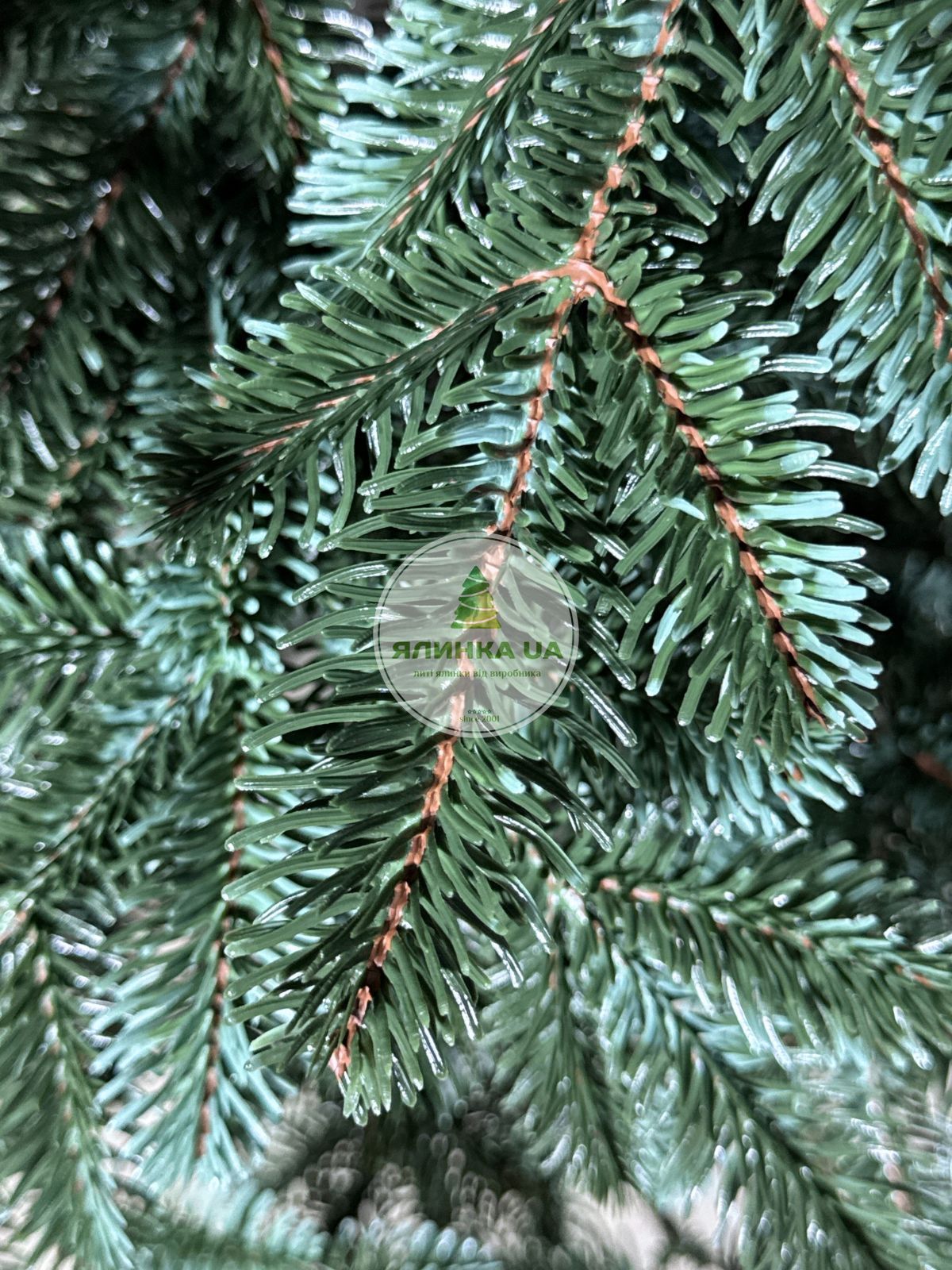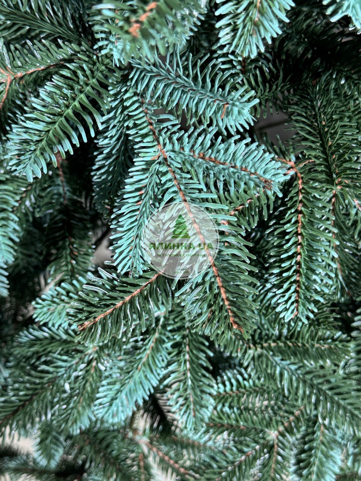Ялинка штучна Канадська. Виглядає як натуральна ялинка завдяки великій кількості індивідуально відлитих гілочок, а все тому, що кожна гілочка відливається в спеціальній формі.  Основи гілок декоровані коричневими елементами, а бічні гілочки блакитні,  надає  нашій ялинці максимальну схожість з лісовою. Це забезпечує ялинці досить натуральний і урочистий вигляд. Самі гілочки  пружні,  не заминаються.